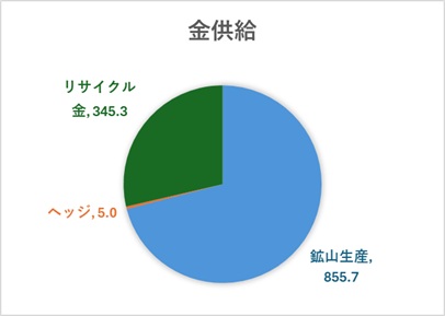 金の供給は、大きく分けて「鉱山からの新規産出」と「リサイクル金」の2つ。